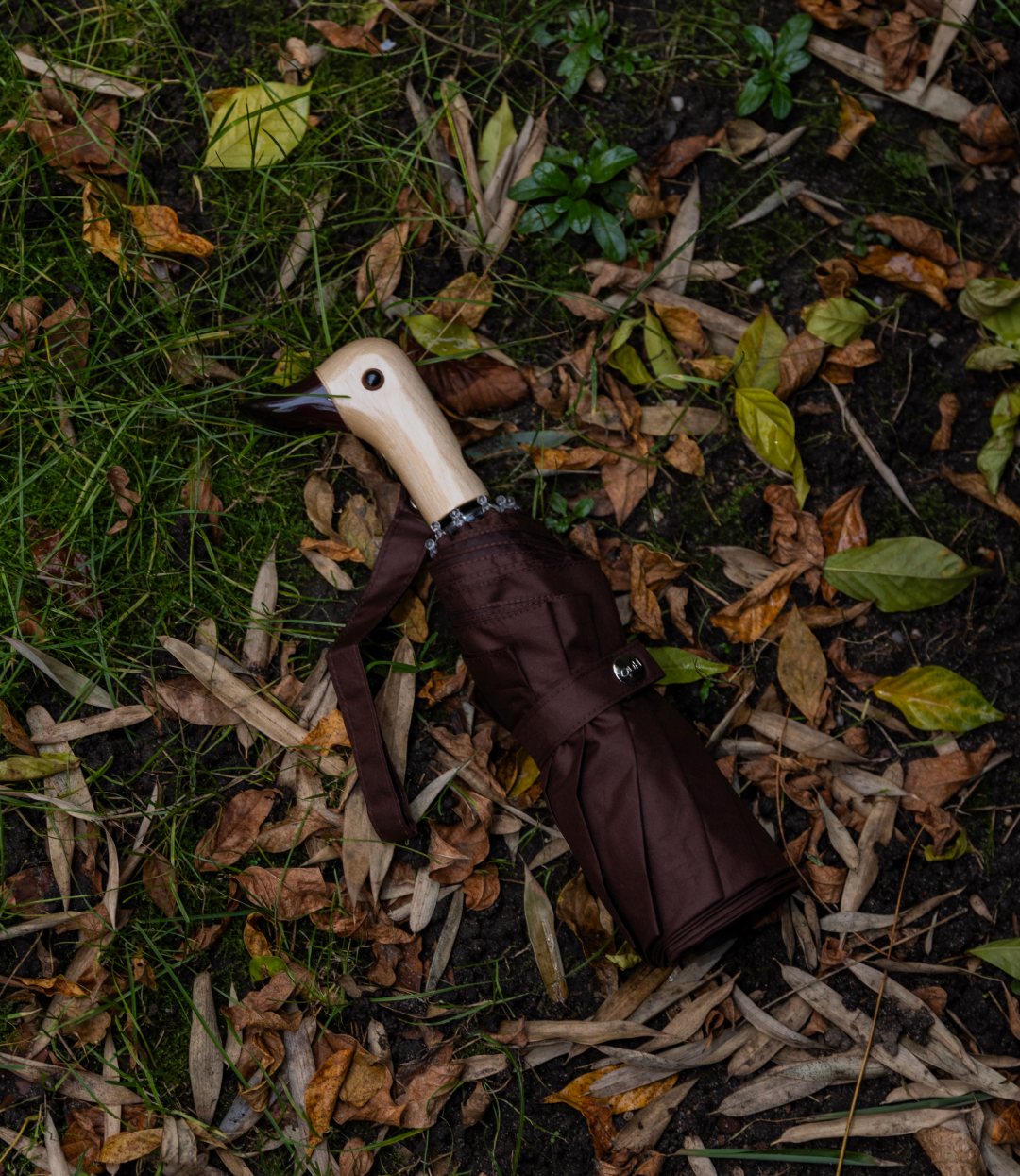 Deze charmante bruine paraplu van Original Duckhead is niet alleen een feest om naar te kijken, maar ook een slimme keuze voor wie graag droog én duurzaam door het leven stapt. Gemaakt van 100% gerecyclede plastic flessen en duurzaam verkregen berkenhout.