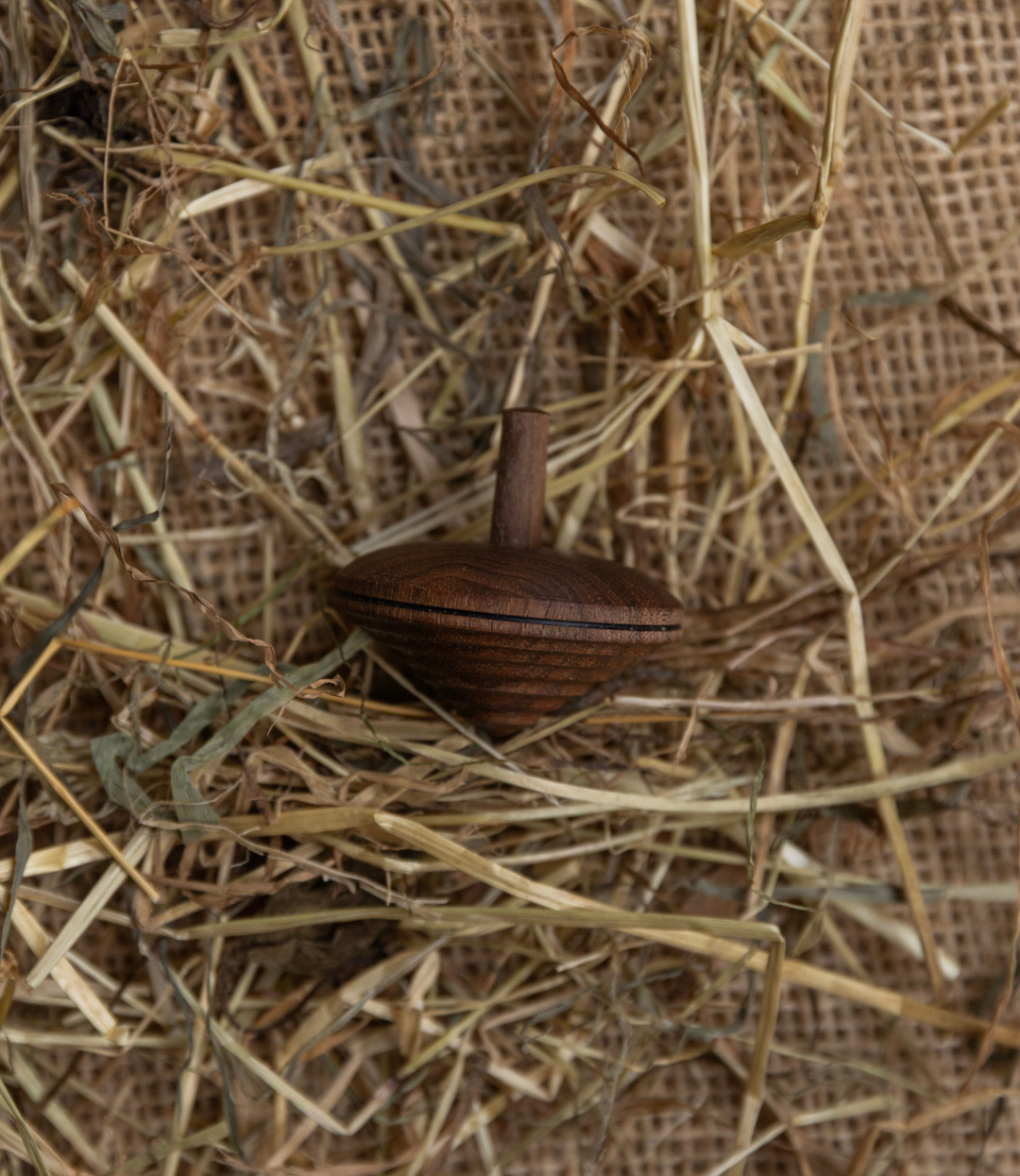 Een prachtig handgedraaide houten tol met natuurlijke uitstraling en subtiele details. De trapsgewijze punt zorgt voor soepel draaien.