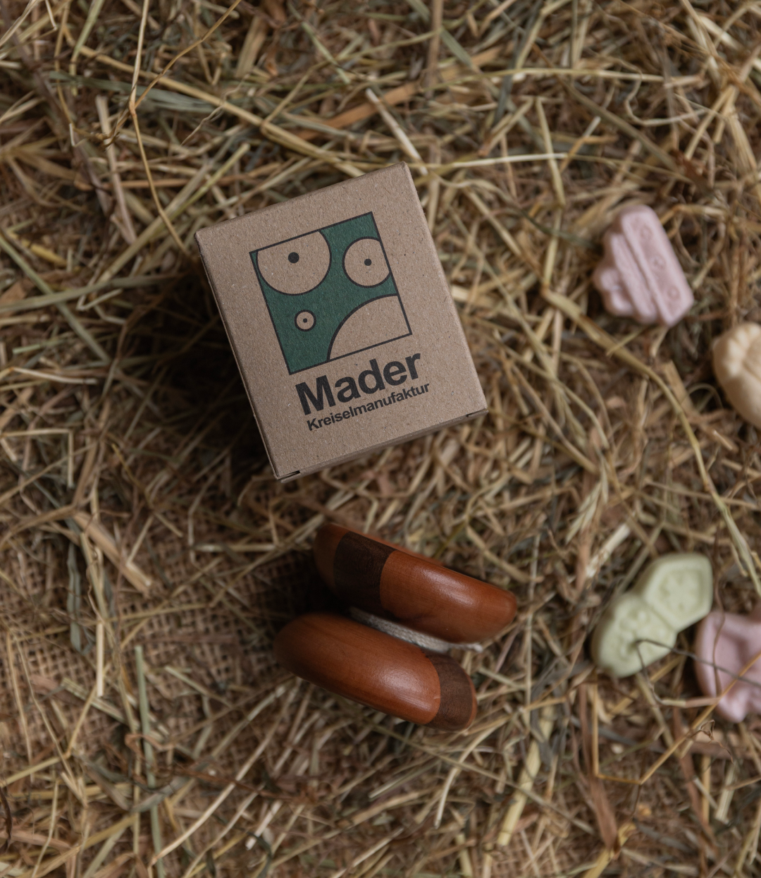 Een stijlvolle jojo voor gevorderde spelers, gemaakt van perenhout en walnoot. De vlindervorm zorgt voor een soepel verloop van de lijn en biedt uitstekende controle bij het uitvoeren van tricks.