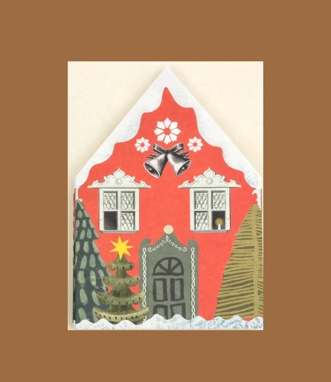 De kaart vouwt uit tot een sfeervol straatje, perfect om neer te zetten op de schouw of vensterbank. Aan de achterkant is ruimte voor een persoonlijke kerstboodschap.