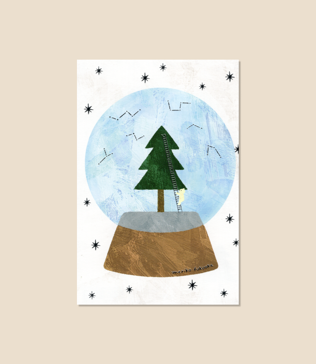 Een ansichtkaart met een dromerige illustratie van Mariko Fukuoka. De subtiele glinsterende foliedruk geeft de kaart een extra vleugje magie.